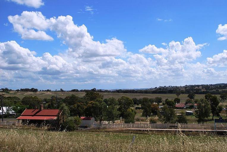 Keywords: 32 48S 149 05E Stuart Town railway station is located on the Main Western line in New South Wales, Australia. It serves the town of Stuart Town. Opened 1 June 1880. attribution: Mattinbgn