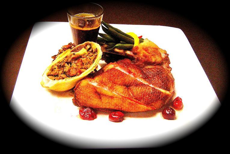 Keywords: Study of duckling.jpg en A study of Duckling from Parker's Restaurant at the Parker House Hotel in Boston by Chef Kevin Doherty The dish features Szechwan rubbed breast of duckling with a confit leg and spring roll The shot glass is a Absinthe Duckling jus own Rouxdaddy Septemeber 30 2008 Duck dishes Kevin Doherty |