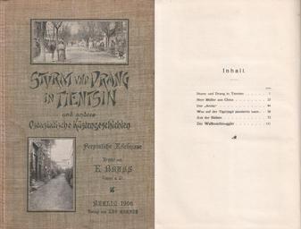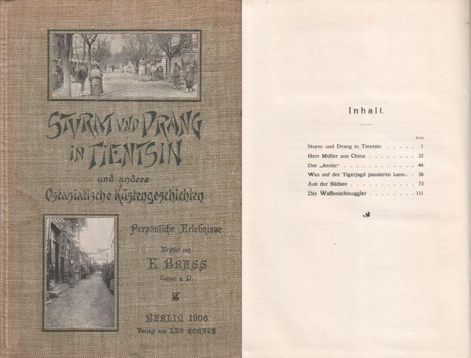 Keywords: Sturm und Drang in Tientsin und andere Ostasiatische Küstengeschichten. Emil Brass1906. Buchdeckel (1) und Inhaltsverzeichnis.jpg E Emil Brass Sturm und Drang in Tientsin und andere Küstengeschichten Persönliche Erlebnisse Erzählt von E Brass Berlin 1906 Verlegt von Leo Korrach Buchdeckel und Inhaltsverzeichnis Leinen 16 x 23 5 cm 149 Seiten Collection Kuhn 1906 Emil Brass PD-old <gallery> Sturm und Drang in Tientsin und andere Ostasiatische Küstengeschichten Emil Brass1906 Buchdeckel 1 und Inhaltsverzeichnis jpg Sturm und Drang in Tientsin und andere Ostasiatische Küstengeschichten Emil Brass1906 Buchdeckel 2 jpg Sturm und Drang in Tientsin und andere Ostasiatische Küstengeschichten Emil Brass1906 Buchdeckel 3 jpg </gallery> Emil Brass 1906 books Book covers from Germany Furs literature German Brass Emil Furrier's collection Kuhn |