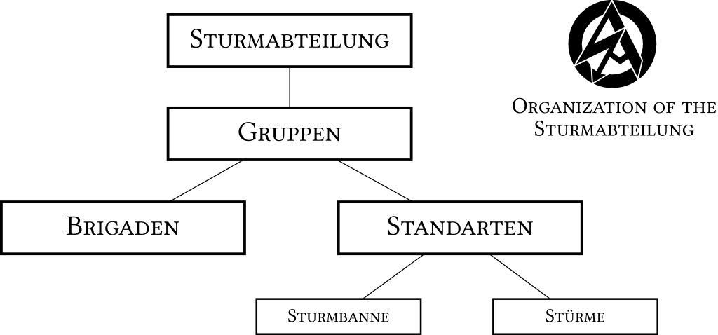 | Keywords: Sturmabteil graphic.svg de Die vorliegende Graphik zeigt die grundlegende Organisationsstruktur der de Sturmabteilung SA en This chart is showing the basic organization structure of the en Sturmabteilung SA Шту мовых от ядов CA ШA Own Lasse Havelund - SA logo by Ratatosk 2008-06-01 Inkscape Nazi symbol Sturmabteilung Nazi Germany |