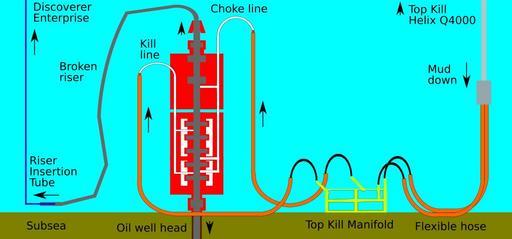 | Keywords: Subsea blowout preventer stack riser mud.svg en Schematic illustration of a subsea blowout preventer stack installed on the seabed with a riser insertion tube in place at the left and kill and choke lines connected to a top kill mud manifold on the right Legend red represents the blowout preventer stack grey represents the oil flow passage white tubing represents the kill left and choke right lines brown represents the top of the subsea well casing the five grey rectangles within the lower red shape represent ram-type blowout preventers the two grey rectangles within the upper red shape represent annular-type blowout preventers the orange pipes are flexible hoses connected to various rigid pipes Own illustration created with approximate reference to the following sources http //www offshore-mag com/index/article-display/323550/articles/offshore/equipment-engineering/us-gulf-of-mexico/cameron-wins-evo-subsea-bop-stack-contract html BP technical briefing linked at http //www offshore-mag com/index/article-display/5210928327/articles/offshore/deepwater-horizon/deepwater-horizon14 html Kent Wells technical update video linked at http //bp concerts com/gom/kentwells_update24052010 htm especially the illustration at time 6 54 BBC diagram at http //news bbc co uk/2/hi/world/us_and_canada/10159626 stm Economist diagram at http //media economist com/images/images-magazine/2010/21/ST/201021STC294 gif Using Inkscape 0 47 2010-05-27 User 84user thumb left Subsea blowout preventer stack with top kill mud lines shown unattached thumb left stack with top kill mud lines attached thumb left stack set up for a top kill plus riser insertion tube thumb left stack in top kill mode plus riser insertion tube and kill mud manifold thumb 480px left large context diagram showing both sea surface and subsea validSVG http //validator w3 org/check uri Created with Inkscape Oceanographic diagrams Blowout preventers Deepwater Horizon oil spill |