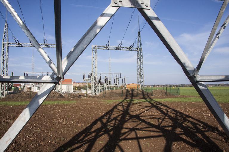 Keywords: substation strommast power supply power lines pylon new current cable power line technology sky blue shadow
