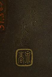 | Keywords: Sugiura Jôi - Tsuba with the Legendary Chinese ruler Shinnô - Walters 51369 - Mark A.jpg The Chinese sage Shinnô Ch Shen Nong Shen Nung is on the right side of the tsuba eating a blade of grass He has two small horns on his head Shinnô is credited with inventing the plow and the harp He also expanded the number of ideograms for the written language from eight to sixty-four On the reverse is a mountain landscape between 1701 1761 mid Edo copper gold sentoku cm 8 9 accession number 51 369 14451 Henry Walters Baltimore date and mode of acquisition unknown Walters Art Museum Henry Walters Acquired by Henry Walters Signature Issandô Jûi kao ; Seal Nagaharu place of origin Edo present-day Tokyo Japan Walters Art Museum license Tsuba in the Walters Art Museum Sugiura Jôi Media contributed by the Walters Art Museum needs category review Shennong |