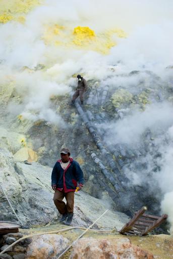 Keywords: sulfur work volcano indonesia bromo steam cloud of smoke pollution