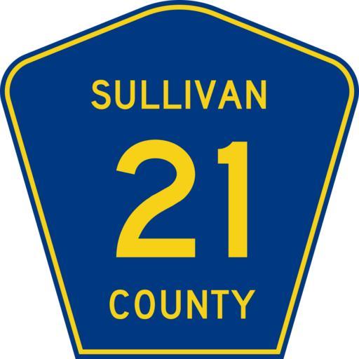 | Keywords: Sullivan County 21.svg 450 mm by 450 mm 18 in by 18 in county shield made to the specifications of the 2004 edition of Standard Highway Signs sign M1-6 Uses the Roadgeek 2005 fonts United States law does not permit the copyrighting of typeface designs and the fonts are meant to be copies of a U S Government-produced work anyway Own 2009-06-27 Carpetmaster101 Own work all rights released Public domain Diagrams of county route markers with county name 0021 21 number | ||||