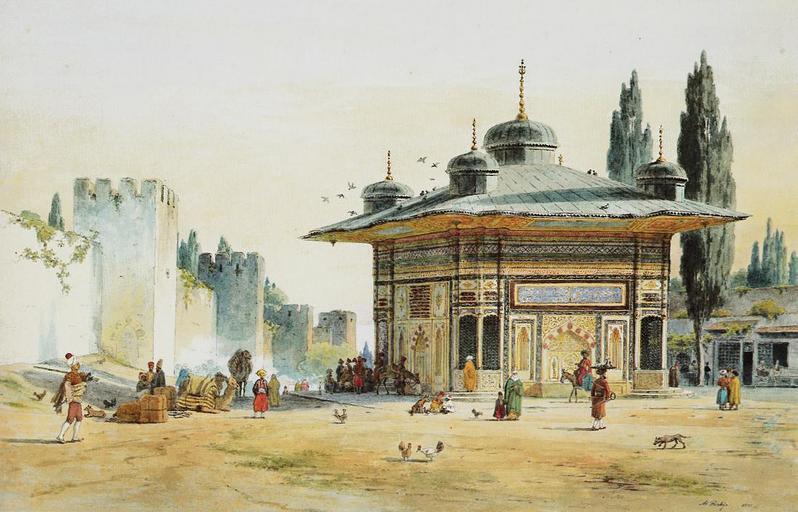 | Keywords: Sultans Ahmet III's Fountain by the Gate of the Seraglio in Constantinople.jpg en Sultans Ahmet III's Fountain by the Gate of the Seraglio in Constantinople Height 29 4 cm 11 57 in Width 38 5 cm 15 16 in Painting Pen watercolor Owner/Location Amalienborg Museum - Copenhagen Denmark 1840 http //www the-athenaeum org/art/detail php ID 69511 Creator Martinus Rørbye Custom license marker 2014 05 06 PD-old-100 Uploaded with UploadWizard 1840 paintings Paintings by Martinus Rørbye Fountain of Ahmed III Amalienborg Palace |