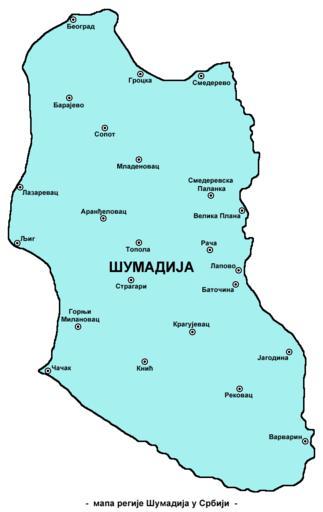| Keywords: Sumadija region-sr.png en Map of Šumadija region in Serbia sr апа Шумадије у С бији own PANONIAN 2014 Cc-zero References Miodrag Milošević Geografija za 8 razred osnovne škole Beograd 1994 Milovan Radovanović Kosovo i Metohija - antropogeografske istorijskogeografske demografske i geopolitičke osnove Beograd 2008 Dragan Rodić Geografija za I ili III razred srednje škole Beograd 1995 http //www serbiainyourhands com/Maps/Sumadija jpg http //farm2 static flickr com/1342/1316209008_09b707caa5 jpg Maps of regions of Serbia Maps of Šumadija Maps in Serbian |