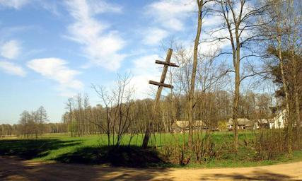 Keywords: Sumiężne kp.jpg Sumiężne Karawaka krzyż choleryczny postawiony w czasie II wojny światowej podczas epidemii tyfusu own 2007 mzopw mzopw Gmina Małkinia Górna Images by mzopw b Cross of Lorraine Wayside crosses in Masovian Voivodeship