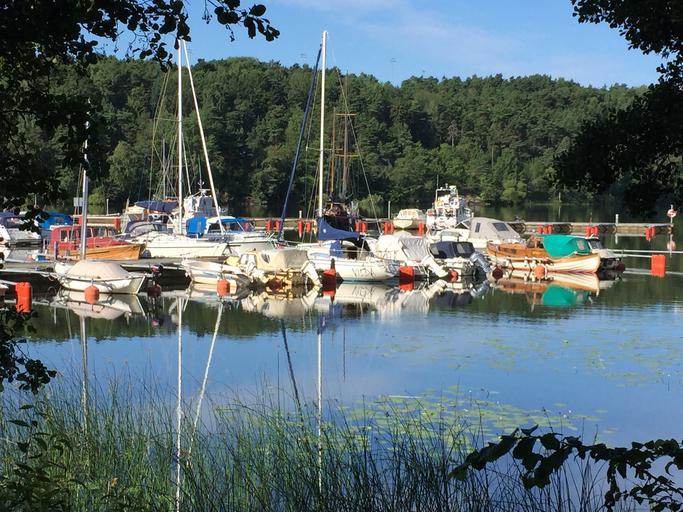 Keywords: summer boat water sweden stockholm boats port bay forest park riverside tree