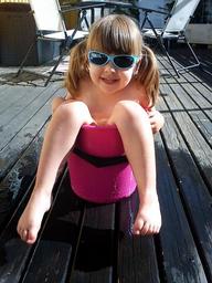 Keywords: summer soak fun water outdoor happy bucket girl porch smile sun happiness young smiling
