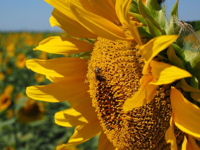 Keywords: sun flower bee blossom bloom nectar inflorescence flower basket flower yellow tongue flower tubular flowers helianthus annuus nature plant beautiful sunny colorful bright macro close