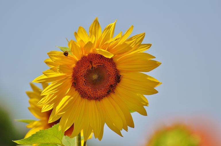Keywords: sun flower bees summer garden blossom bloom yellow insect helianthus nature pollination close pollen macro sunny sun plant helianthus annuus flower seeds