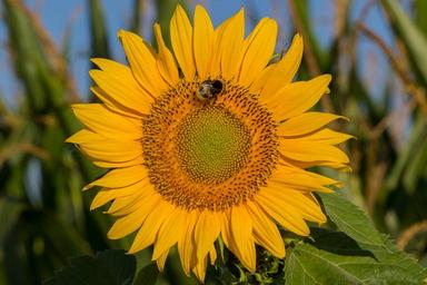 Keywords: sun flower blossom bloom summer yellow nature pollen sprinkle nectar composites insect pollination edge of field hummel