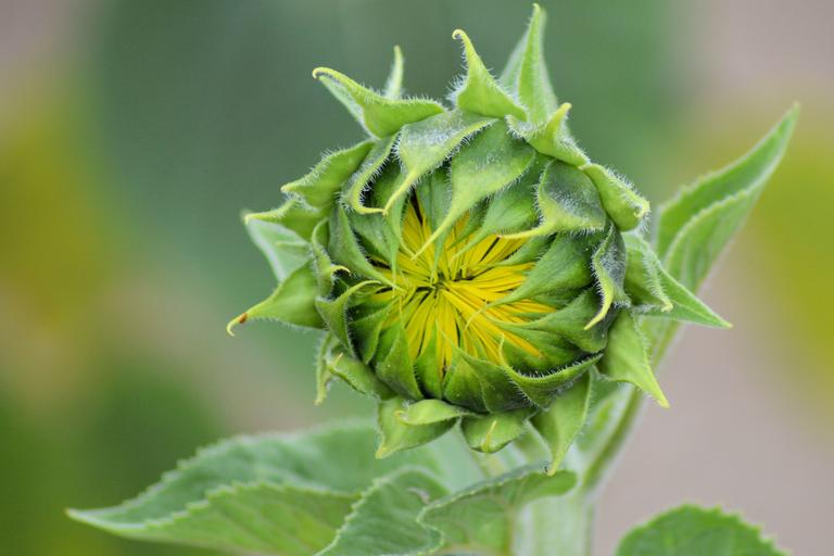 Keywords: sun flower bud summer yellow blossom bloom going up