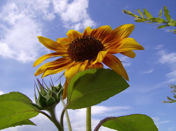 Keywords: sun flower close sky blue bright nature plant yellow summer blossom bloom