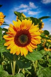 Keywords: sun flower flower blossom bloom summer field yellow plant