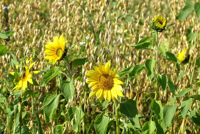 Keywords: sun flower yellow green summer oats field flowers nature