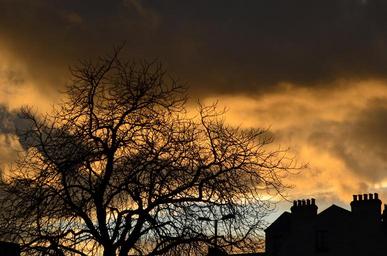 Keywords: sun red night evening sky blue tree background greeting cards clouds