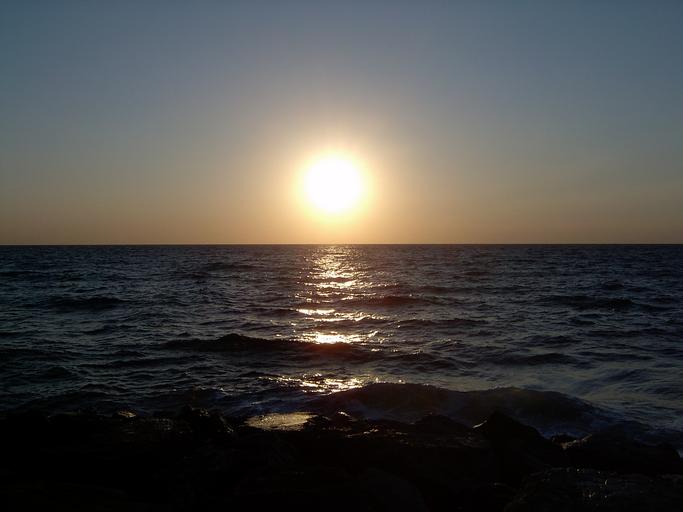 Keywords: sun sea horizon sunset haze evening setting sun wave