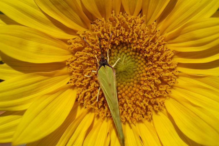 Keywords: sun sunflower yellow gold summer flower plant nectar center target the intervention of the petals clear bright mood lights insect butterfly