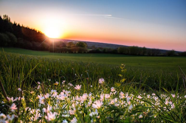 Keywords: sun sunset abendstimmung sky setting sun afterglow field trees romantic evening sky evening sun romance mood dusk flowers daisy distant view twilight