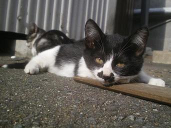 Keywords: Sunbathing tuxedo stray kitten.JPG en A sunbathing stray kitten with a white and black coat in Fukuoka City Japan The cat was born around August 2009 and passed away on December 4 or 5 2009 maybe because of hypothermia after fracturing a hind leg I buried the corpse with a flower on December 6 2009 Rest in peace my friend お前の生きた証をここに残しておく 安らかに れ own The Wifechaser 2009-11-05 Feral cats in Japan Lying cats Sunbathing animals Black and white cats Kittens Tuxedo patterned black and white cats |