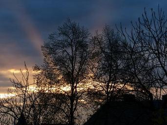 Keywords: sunbeam sunset mood romantic idyll trees evening