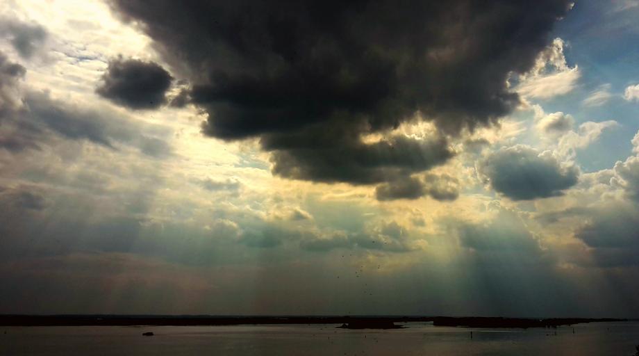Keywords: sunbeam weather weather mood sky clouds sunlight nature rays lighting light mood atmosphere sunset dramatic cloud formation dramatic sky lichtspiel evening sky climate natural spectacle