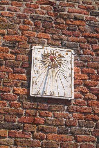 Keywords: sundial old wall red stones sun monument historic building netherlands