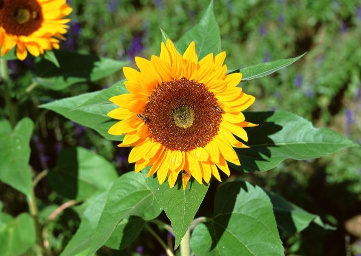 Keywords: field farm meadow vibrant agriculture green earth flower yellow culture bright sunny sunflower outside plantation growth blue plant rural sky country scene nature landscape
