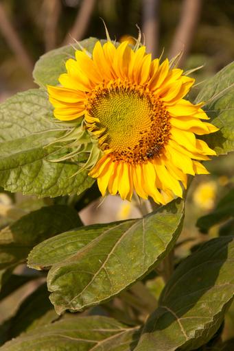 Keywords: sunflower bee yellow green bright nature autumn leaves colorful bloom refreshing