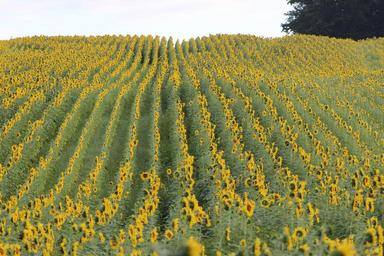 Keywords: sunflower blooming flower yellow field beautiful