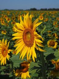 Keywords: sunflower field sun flower summer idyllic helianthus annuus flower nature plant blossom bloom yellow inflorescence beautiful sunny colorful bright crop agriculture cultivation field economics herbaceous plant