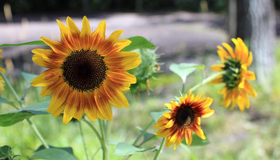 Keywords: sunflower firecracker garden multiple summer outdoors sun flower landscape colorful plant leaf sunlight orange yellow petals blossom botanical gardening agriculture beautiful season