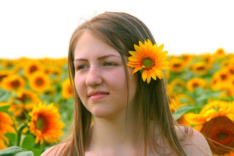 Keywords: sunflower girl portrait yellow field