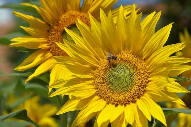 Keywords: sunflower yellow the shining flower summer bee target seeds