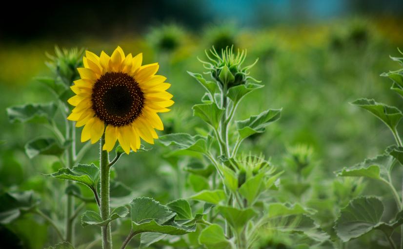 Keywords: sunflowers field landscape sunflower pipes yellow flower nature