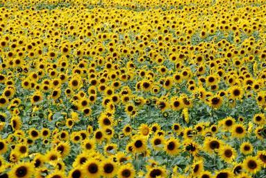 Keywords: sunflowers flowers field yellow summer agriculture crop vibrant