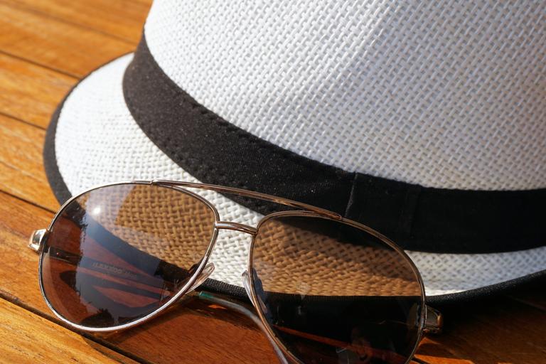 Keywords: sunglasses glasses sun sun protection summer leisure relaxation mirroring darken protection fashionable accessory break hat summer hat sun hat straw hat