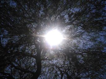 Keywords: sunlight look up trees sky sunny afternoon leaves forest color sun light woods