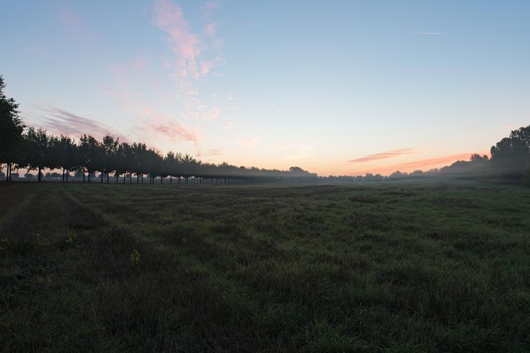 Keywords: sunrise fog haze lane field