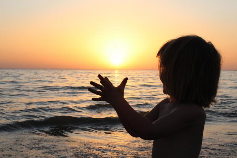 Keywords: sunrise girl children silhouette solar water sea beautifully nature still mirror peaceful summer catch horizon ro mirroring happy joy morning dip