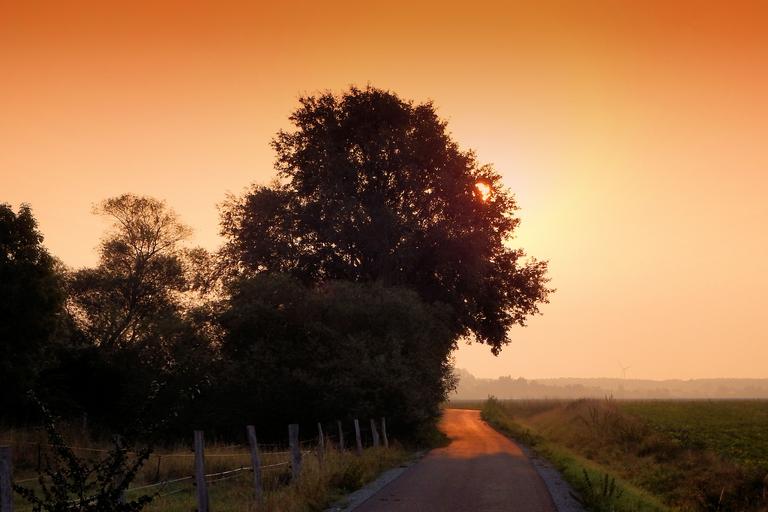 Keywords: sunrise haze fog trees morgenstimmung morning hour morning mist landscape