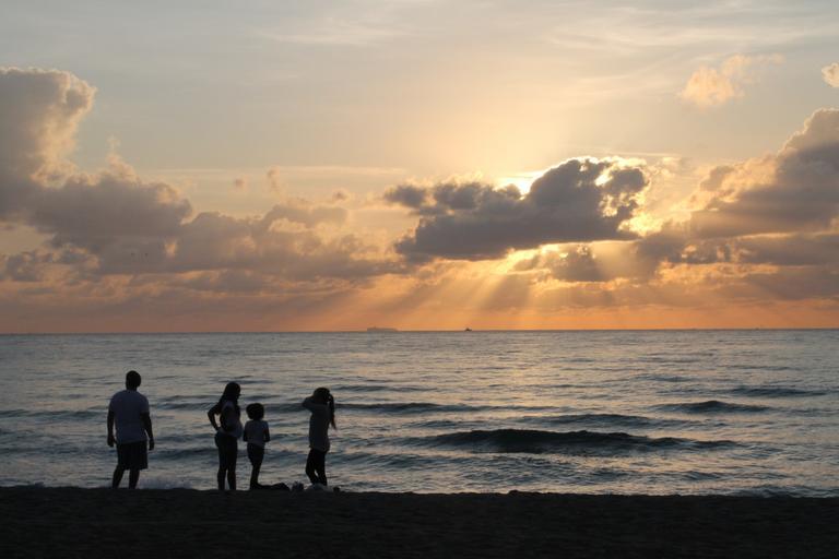 Keywords: sunrise morning dawn beach sky summer beach ocean vacation serene horizon silhouettes mood