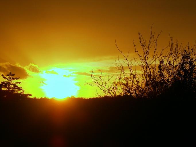 Keywords: sunset afterglow evening sky romantic clouds nature sky sun rest abendstimmung tree bush silhouette still atmospheric mood