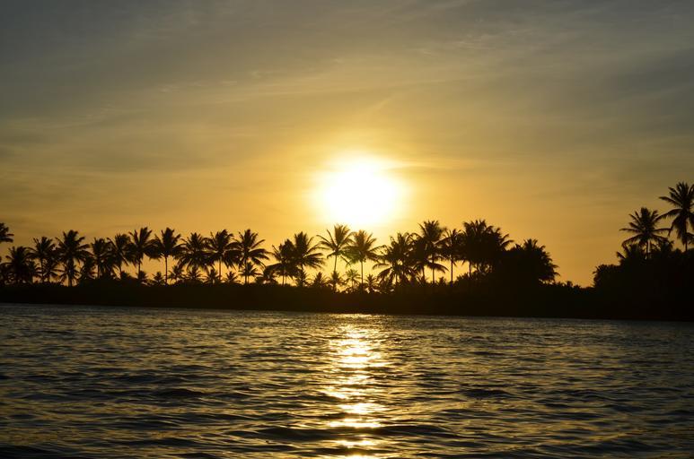 Keywords: sunset background palm trees water tropical sunset sea scenery romantic reflection
