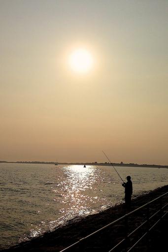 Keywords: sunset beach fishing ocean water setting sun sand summer