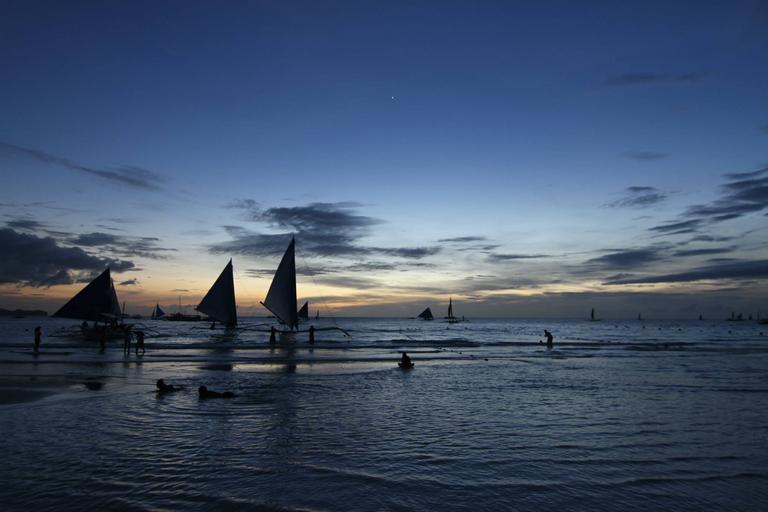 Keywords: sunset beach twilight boats
