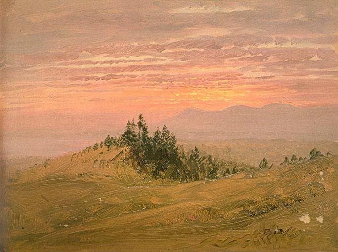 | Keywords: Sunset & Catskills from Church Hill Frederic Edwin Church.jpg en Sunset Catskills from Church Hill Olana ” by Frederic Edwin Church Oil on paperboard; 10 3/8 x 13 7/8 in Olana State Historic Site Hudson New York Carr Gerald L 2007 Frankel Stephen Robert ed Frederic Edwin Church Romantic Landscapes and Seascapes New York Adelson Galleries p 51 ISBN 978-0-9741621-7-1 scan creator Frederic Edwin Church 1870 “72 PD-old-100 Paintings by Frederic Edwin Church Catskill Mountains in art Olana State Historic Site 1870 paintings in the United States 1870s landscape paintings |