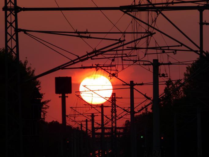 Keywords: sunset city railway station twilight evening sky sky afterglow evening sun atmosphere glow